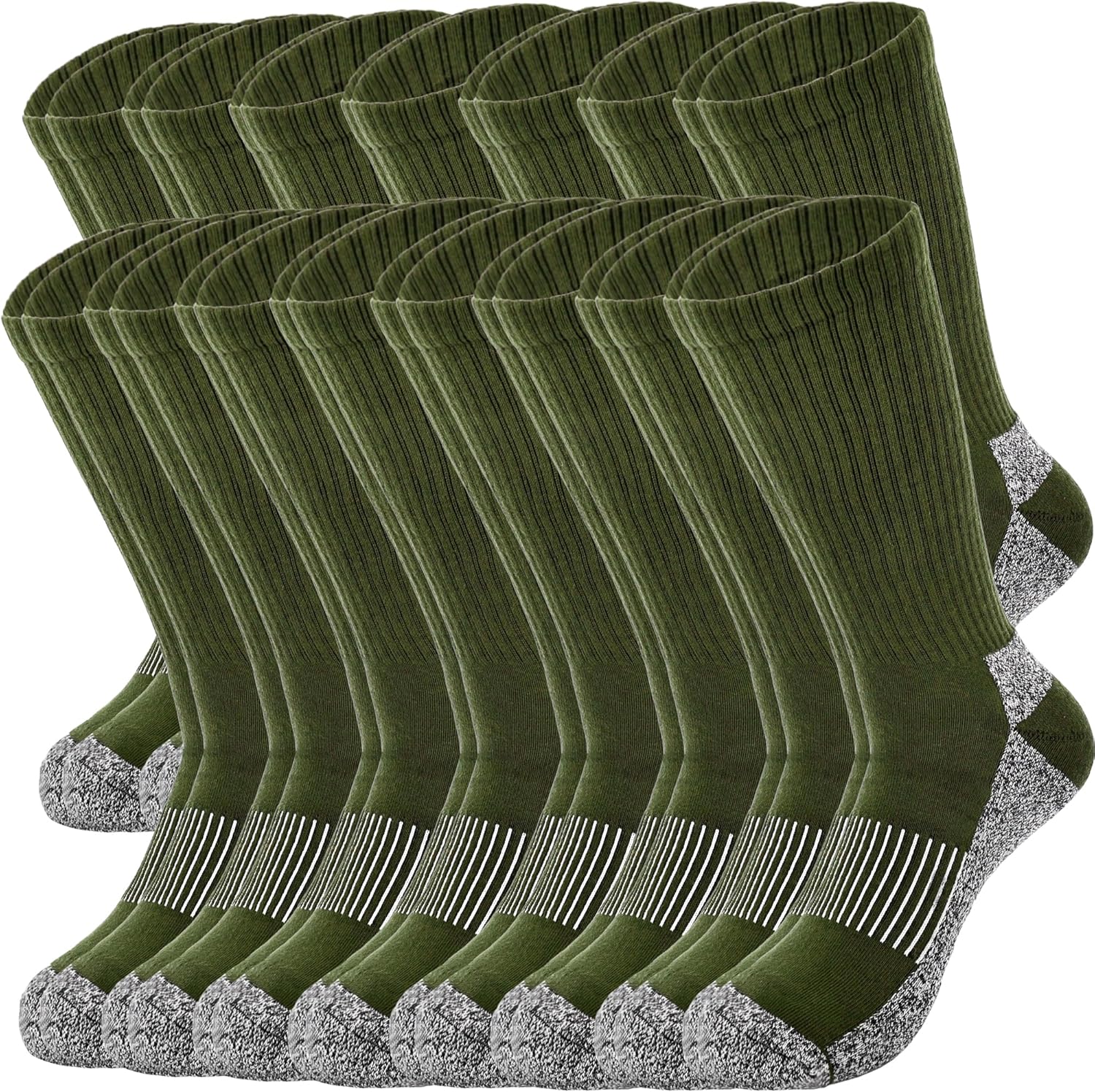 【Army Socks for Men Military Suitable Occasion】: army socks for men military are suitable for soldiers, police, firefighters, security personnel to wear when working outdoors, and also suitable for hiking, fishing, camping, dating, shopping, cycling, skiing, walking, running in daily life 【Army Military Socks Specification】: Material: 70% cotton, 22% polyester and 8% spandex Color: green Quantity: 15 pairs 【Package include】: 15 x Army Green Socks
