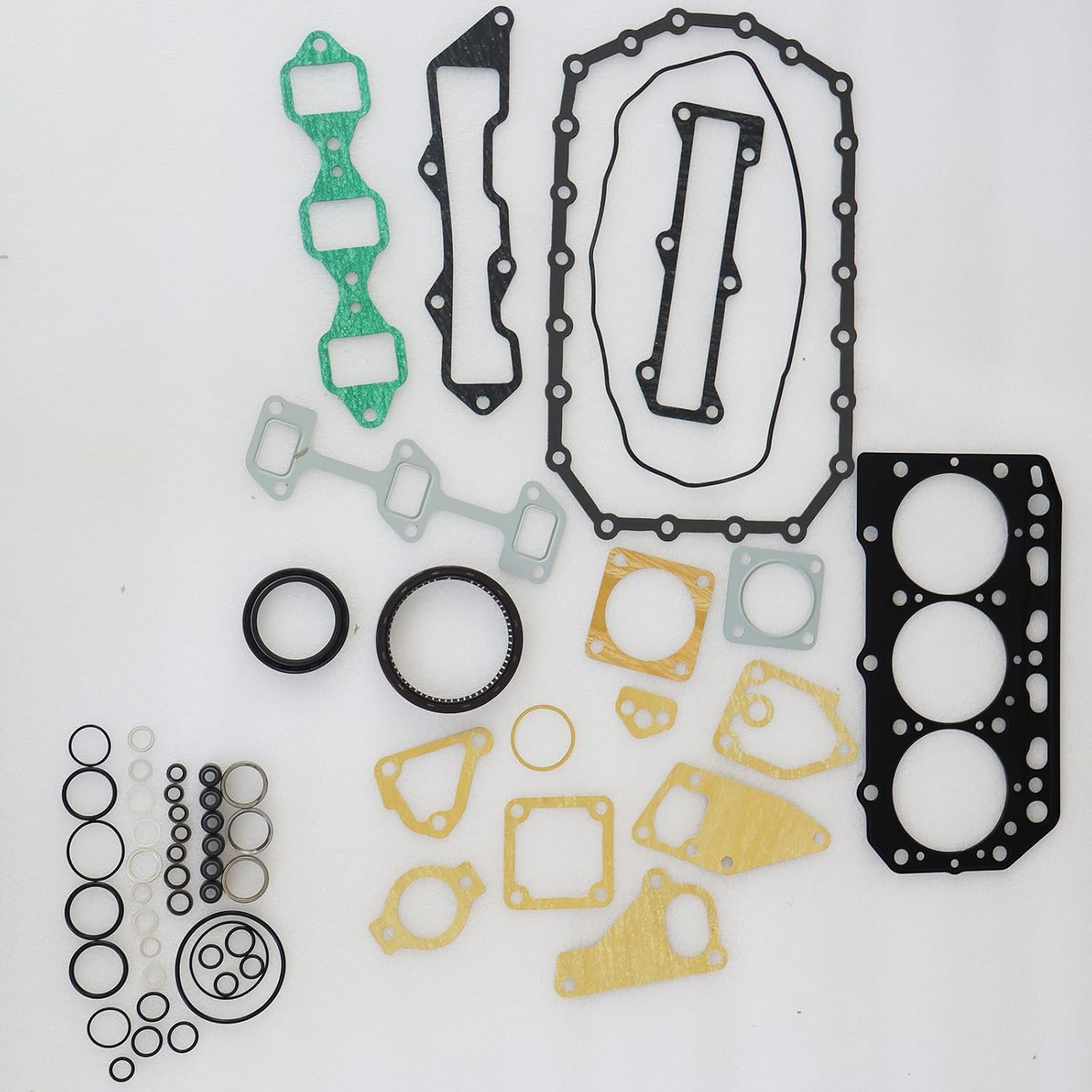 The product includes:1 Set Full Gasket Kit with Head Gasket3 Pieces STD Cylinder Liners 3 Pieces STD Piston3 Sets STD Piston Rings3 Pieces STD Piston Pin3 Pairs STD Piston Clip6 Pieces Valve Guides3 Pieces Intake Valves3 Pieces Exhaust Valves3 Pieces Intake Valves Seats3 Pieces Exhaust Valves Seats1 Set STD Crankshaft/Main Bearing1 Set STD Connecting Con Rod Bearing1 Set STD Thrust Washer/Bearing