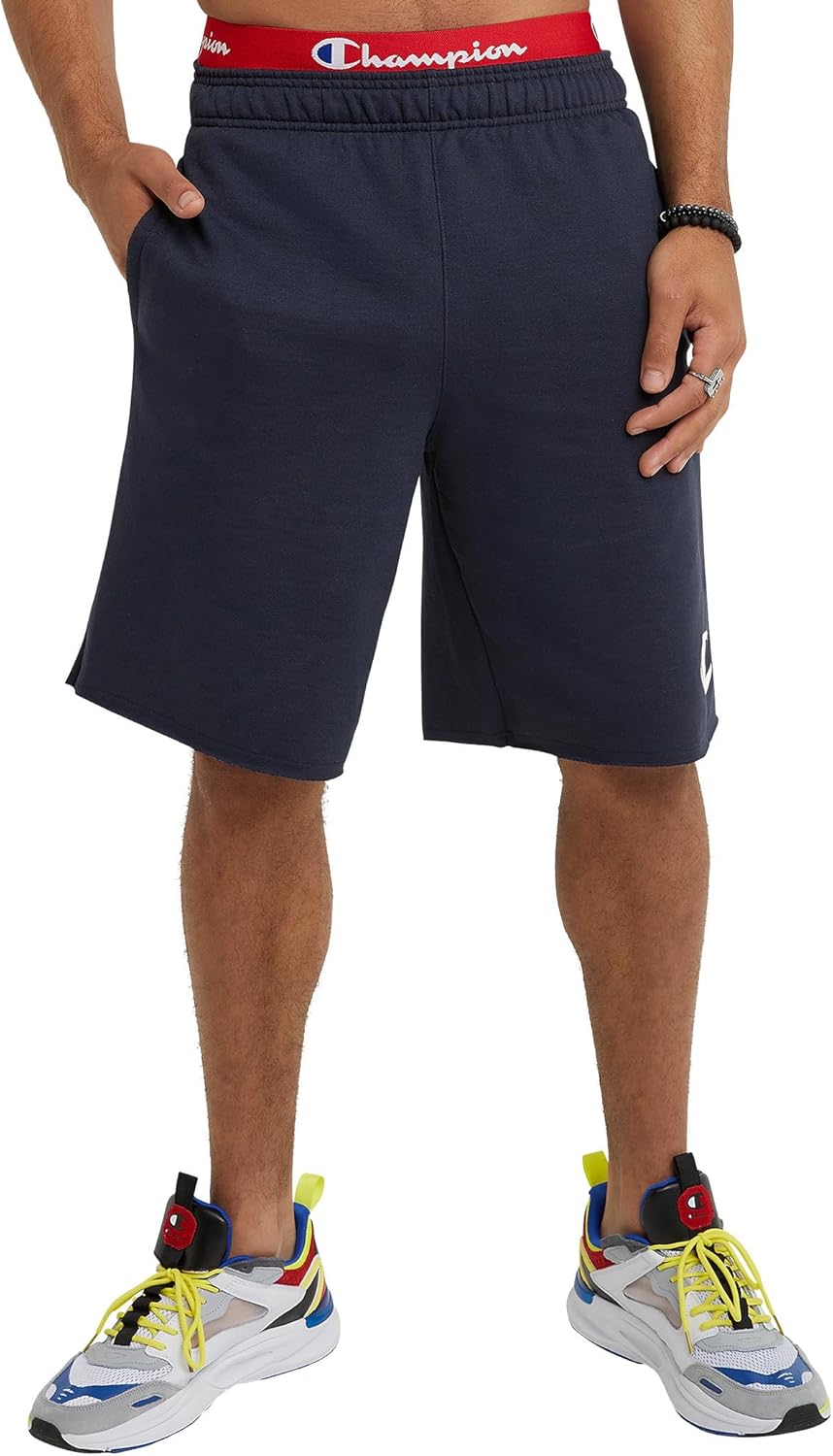 SPOT THE BIG C. Say hello to the Powerblend® Shorts for men, where quality meets exceptional comfort. This knee-length pair with pockets borrows the best features from your favorite sweats for a year-round style that won't weigh you down. The plush, cotton-blend fabric resists pilling and shrinking and is made with extra stitching for a lasting fit. The elastic waistband and inner drawcord give you plenty of fit flexibility, and the soft, brushed interior feels great whether you're at the gym or kicking back on the weekend. Roomy side pockets hold your essentials. An oversized C logo patch displays your brand pride, letting everyone know what you're all about.