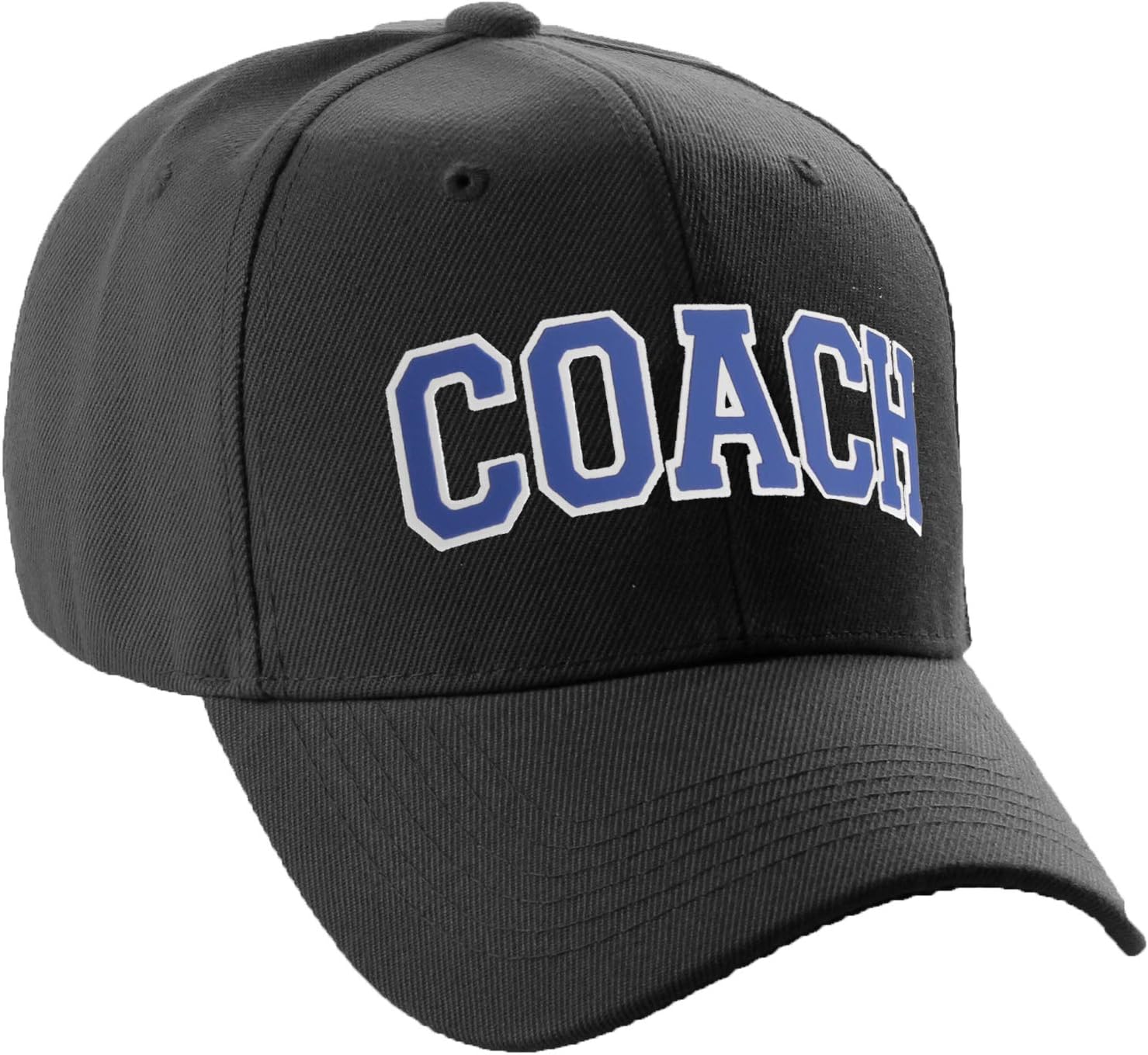 Classic Sports Team COACH hat. Classic Premium 3D Structured Baseball Hats with curved visor are made with durable 100% polyester with six panels and eyelets, 6 rows of stitching on pre-curved bill soft hand feel, adjustable back to fit most. Made with high quality durable materials